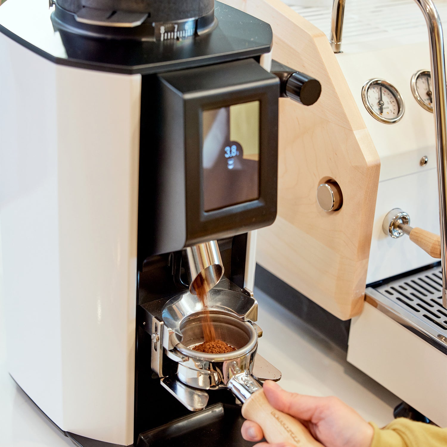 One of our favorite features in the Luna is Anfim’s hallmark grind adjustment mechanism operated with a mechanical worm gear. This allows the grind size to be manipulated almost effortlessly with just two fingers, and with better precision than adjustable collars.